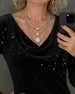 Top Rynket Kors Design V-hals Glitter Stumpearbejde