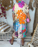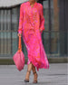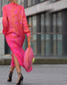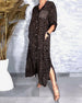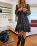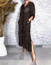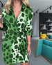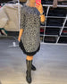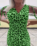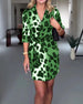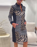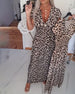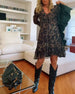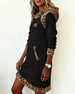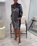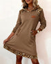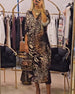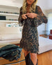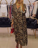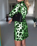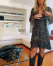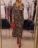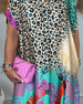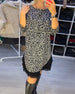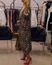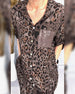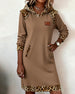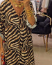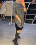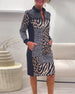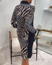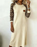 Delvist stribet patchwork-kjole med leopardprint og lynlås