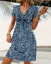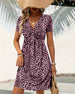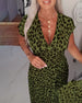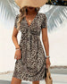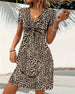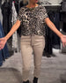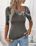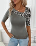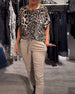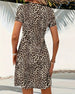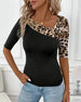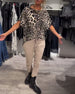 Bluse Rund Hals Leopardtryk Korte Ærmer