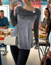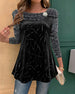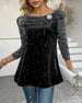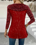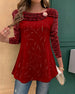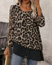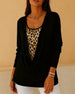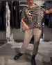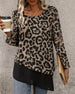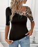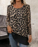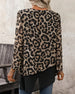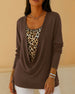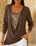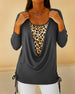 Bluse afslappet v-udskæring blondepanel med leopardprint