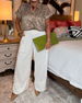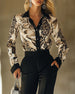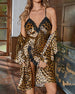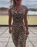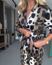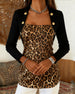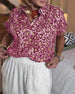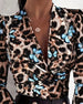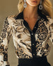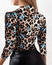 Stilfuld leopardprint bluse med blonde V-udskæring
