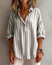 SPECIFIKATIONER Top type: Bluser Stil: Afslappet Materiale: 100% Bomuld Lejlighed: Daglig Halsudskæring: Revers Mønstertype: Stribet Ærmetype: Almindeligt ærme Ærmelængde: Langærmet Pasform: Almindelig Sæson/årstid: Forår,Efterår Detaljer: Knapper Pakken inkluderer: 1 x Bluse STØRRELSESTABEL (cm) Størrelse Buste Længde S 97 65 M 101...