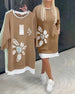 Sweatshirtkjole Rund Hals Trykt Patchwork