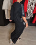 Stilfuldt ensfarvet pailletteret kjolesæt med V-udskæring og slids