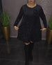 Kjole Rund Hals Langærmet Med Glitter Patchwork