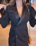 Elegant langærmet læderkjole med V-hals og snøre