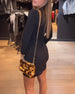 Sort-hvid slim fit kjole med bladprint og slids